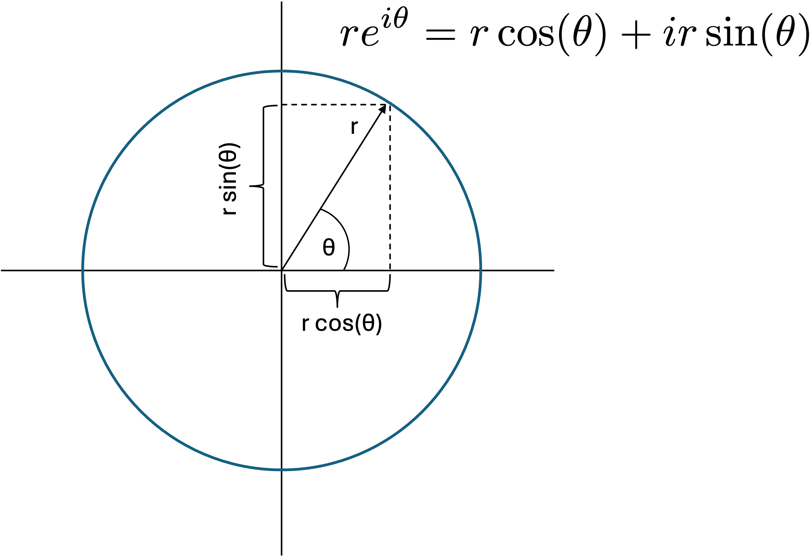 Complex form using Euler identities \[e^{i\theta} = \cos(\theta) + i\sin(\theta)\] \[\cos(\theta) = \frac{1}{2}(e^{i\theta} + e^{-i\theta})\] \[\sin(\theta) = \frac{1}{2i}(e^{i\theta} - e^{-i\theta})\] Insert into the above equation \(\Rightarrow\)
