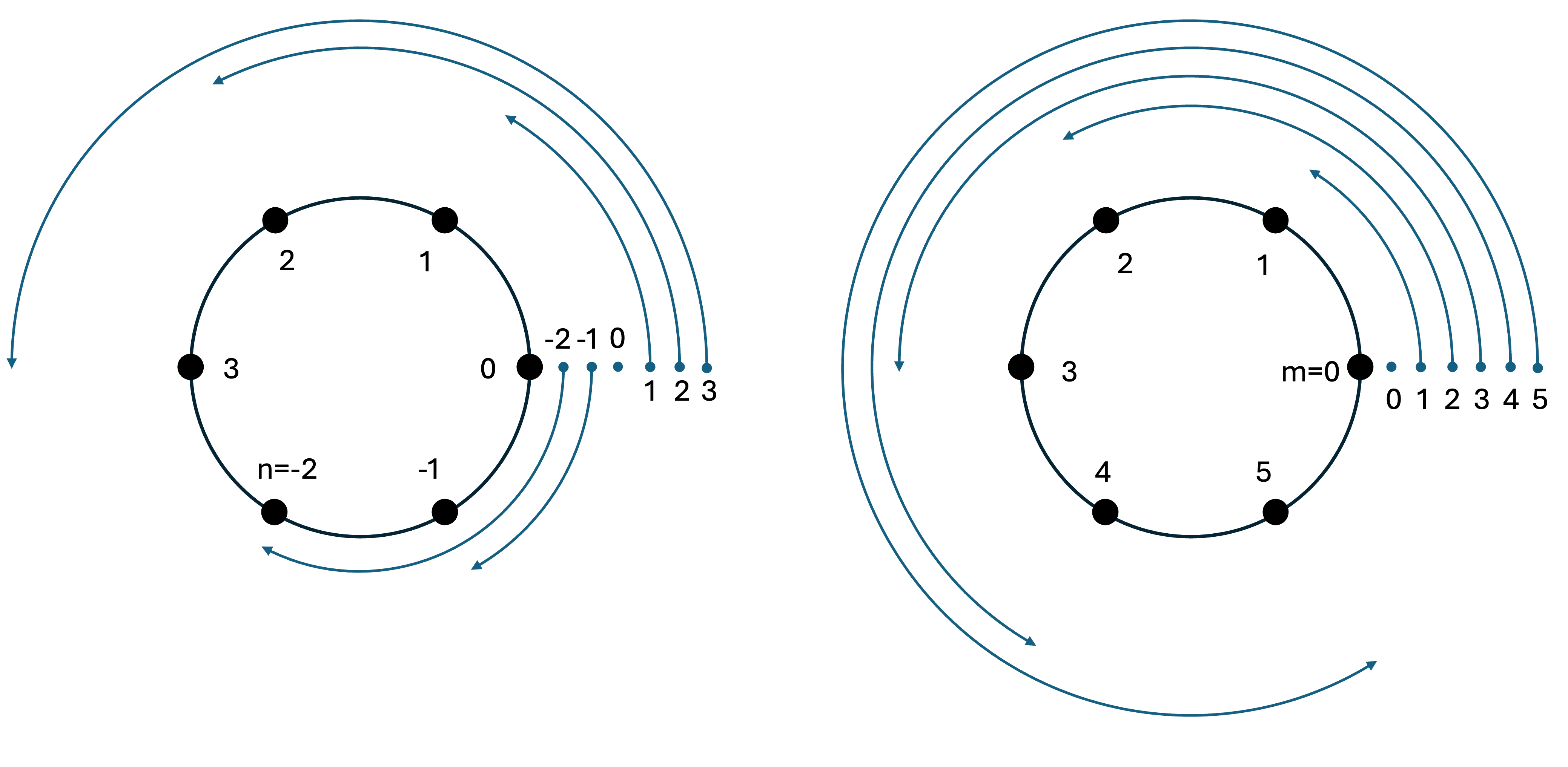 \[\sum_{n=-N/2+1}^{N/2}c_ne^{2\pi inj/N} = \sum_{m=0}^{N-1}\hat{c}_m e^{2\pi imj/N}\]